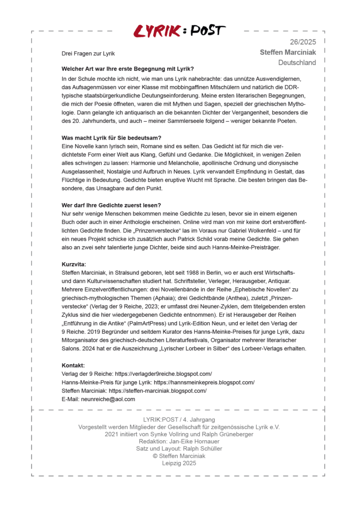 Unsere Reihe „LYRIK:POST“!